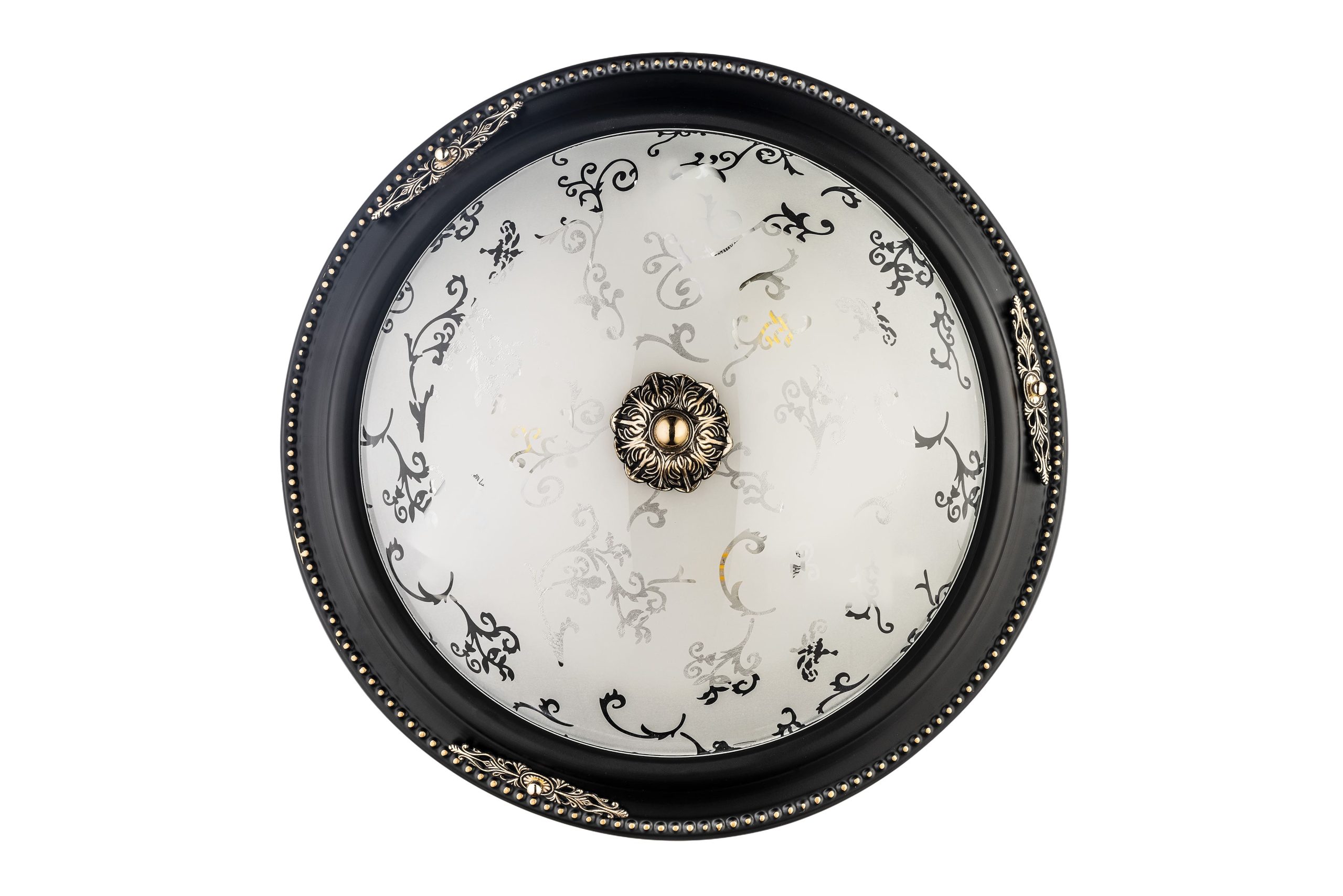 • Дизайн: Светильник представляет собой плоский, круглый или овальный плафон, крепящийся непосредственно к потолку. Он имеет богато украшенную окантовку и декорированный центральный элемент.