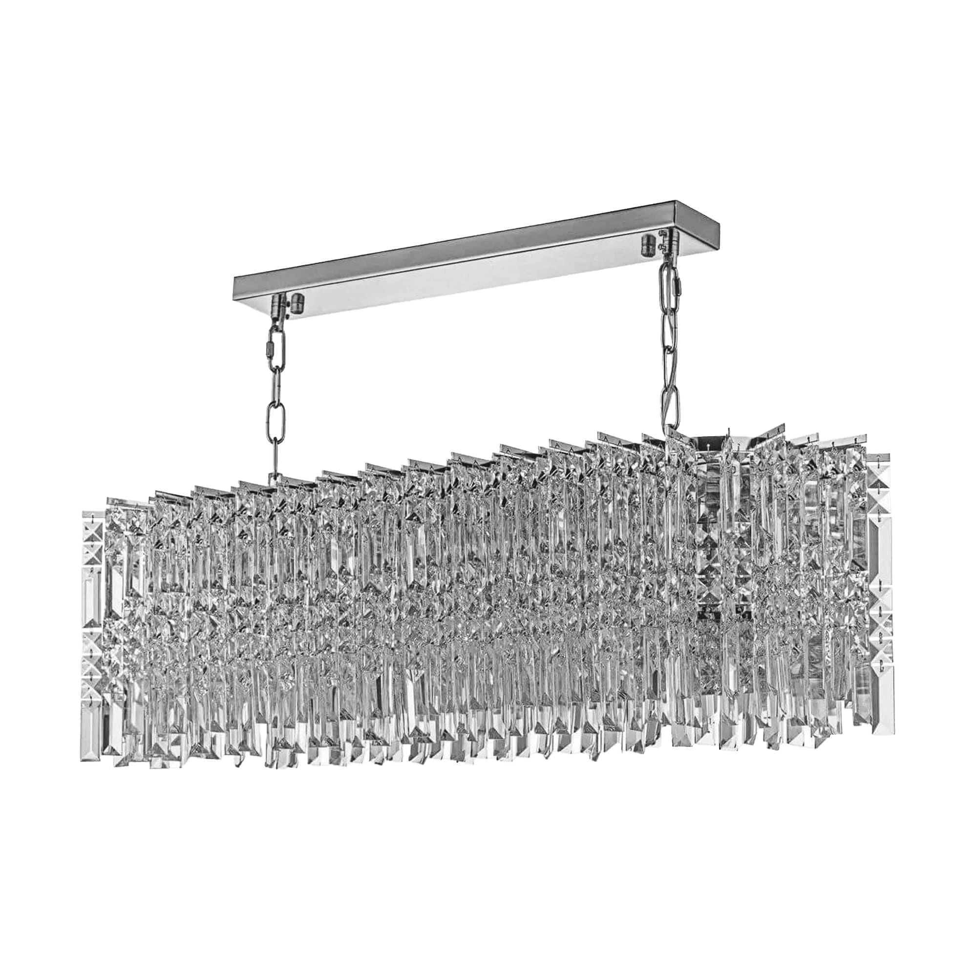 -Прямоугольная линейная люстра с металлическим каркасом хромированного/никелевого цвета