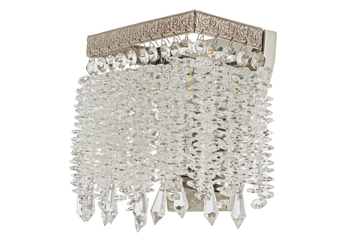 • Хрустальные элементы: Бра щедро декорировано прозрачными, гранеными хрустальными подвесками: