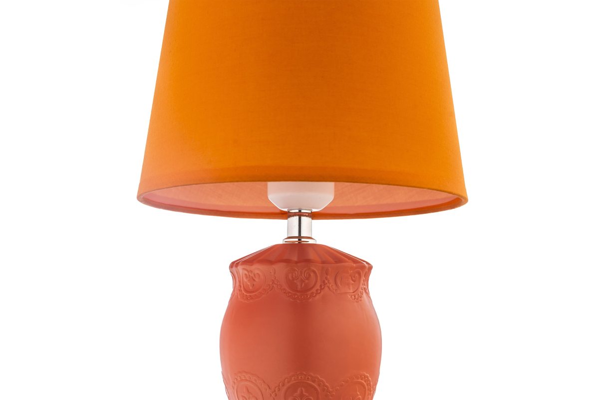• Лампа выполнена в монохромном стиле: и абажур, и основание выдержаны в едином насыщенном терракотовом (оранжевом) цвете. Этот теплый оттенок создает атмосферу уюта, солнечного света и тепла.