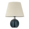 Noli E 4.1 BL-Настольная лампа выполнена в современном стиле с элементами минимализма. Она имеет простую, лаконичную форму. Основание лампы представляет собой гладкий шар из синей керамики. Под абажуром находится небольшой металлический переходник никелированного цвета. Абажур конической формы, выполнен из светлой, бежево ткани с простой фактурой. Общее впечатление – спокойное, элегантное, подходящее для современного или скандинавского интерьера.