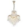 2. Материалы и цвет: Основной каркас выполнен из полированного металла, имитирующего золотой цвет. Этот золотистый оттенок придает люстре богатый и торжественный вид. Главным декоративным элементом являются многочисленные прозрачные, граненые хрустальные подвески.