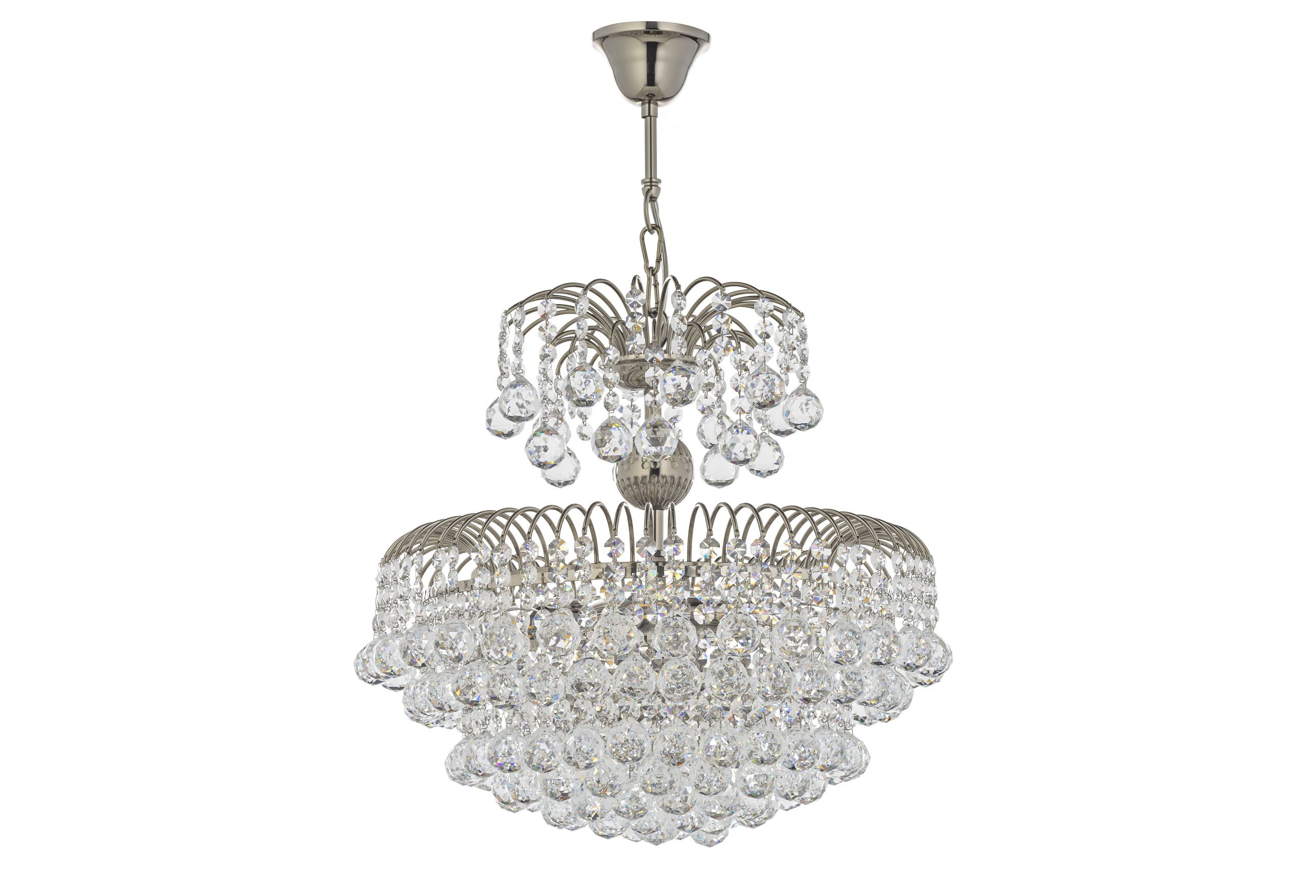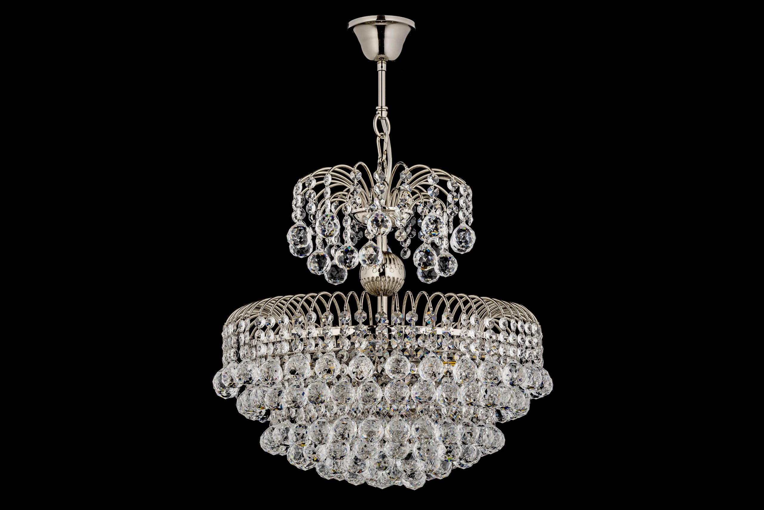 Pompei E 1.5.40.100 N- Перед вами изысканная двухъярусная каскадная люстра, которая является «холодной» версией классического дворцового освещения. Замена золотого покрытия на серебристое придает ей более современный, строгий и универсальный вид.