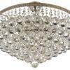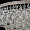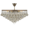 * Декор: Основной декор люстры составляют многочисленные хрустальные подвески. Они имеют шарообразную форму с гранями, которые отражают и преломляют свет, создавая мерцающий эффект. Подвески расположены ярусами, образуя пышный и объемный абажур.