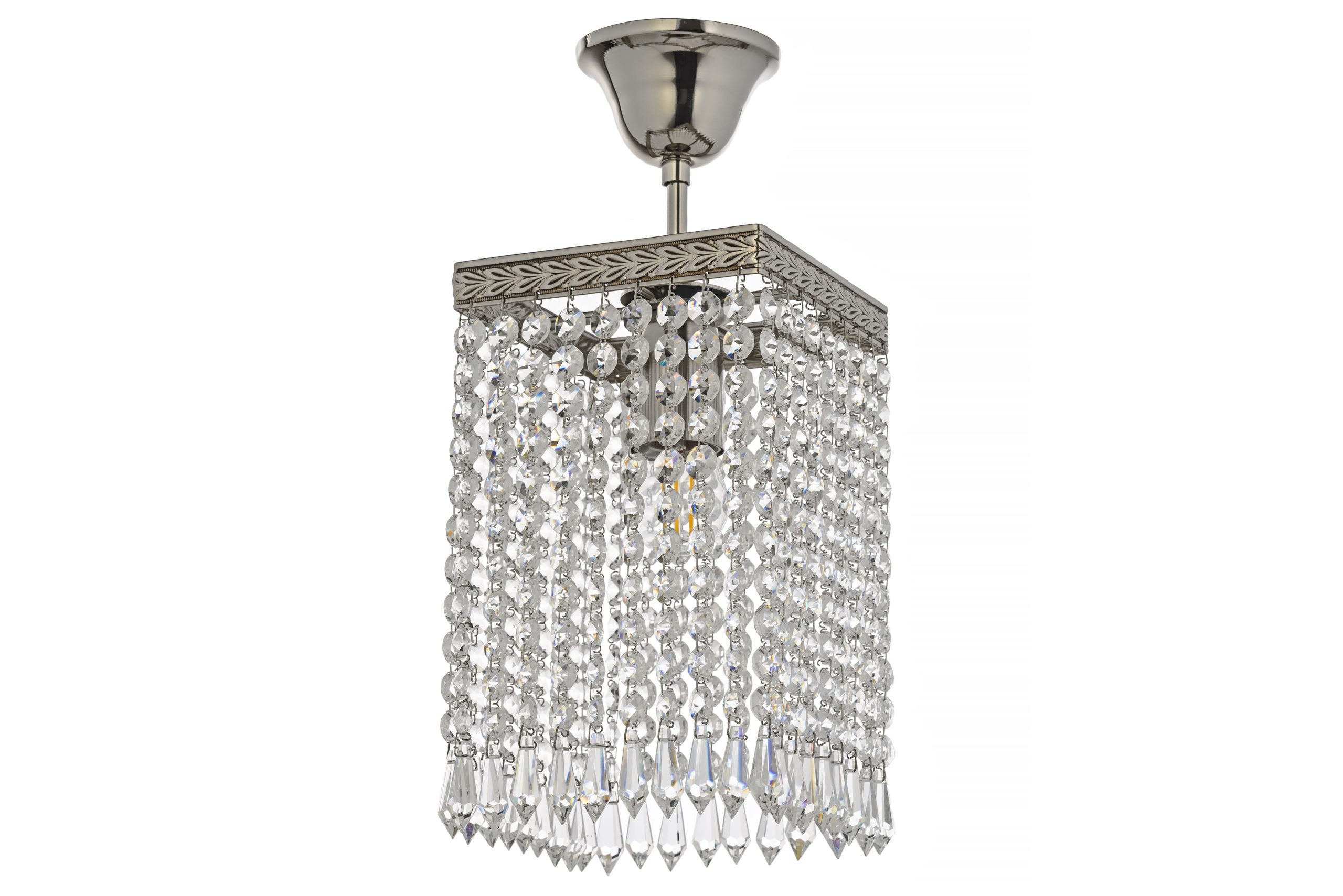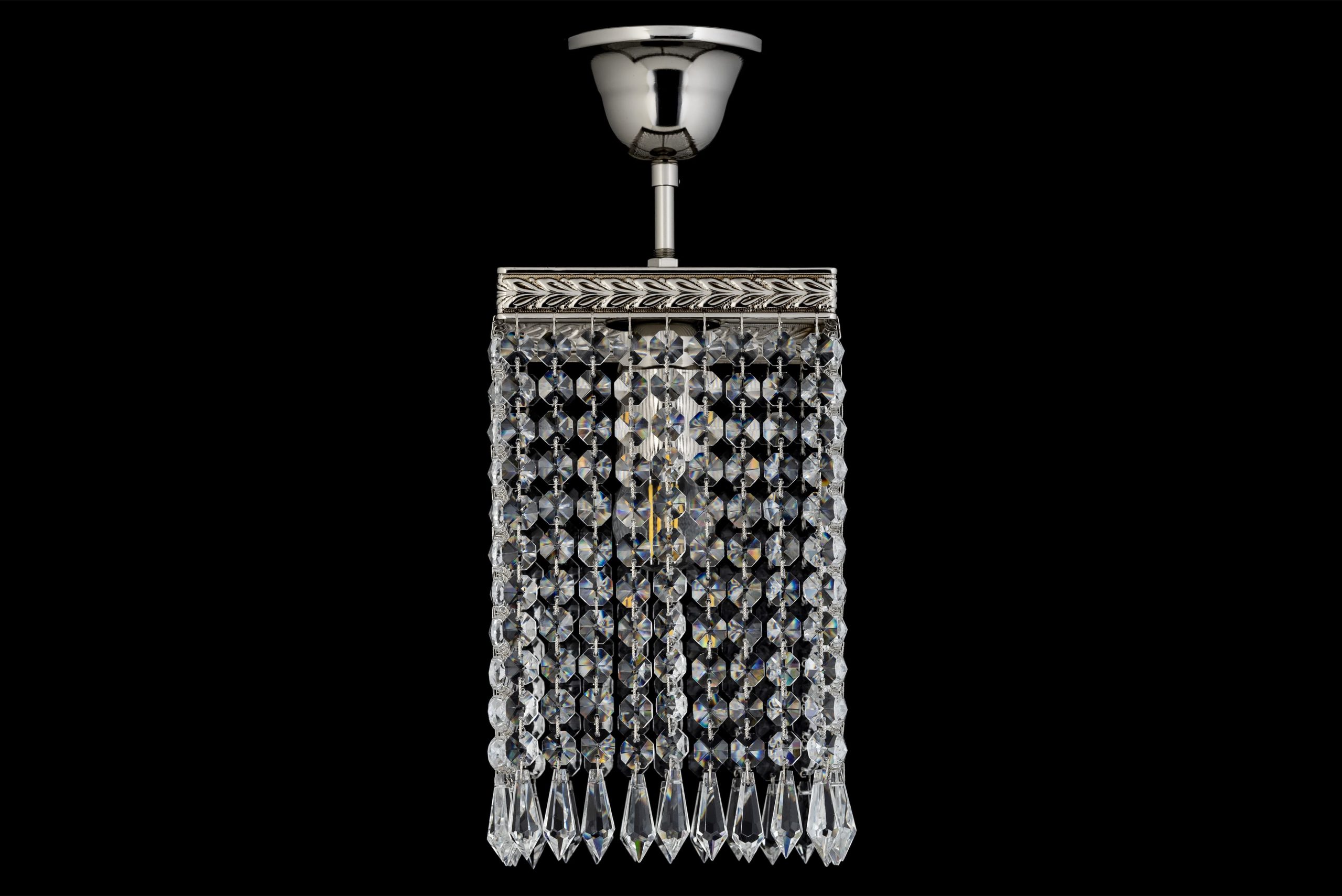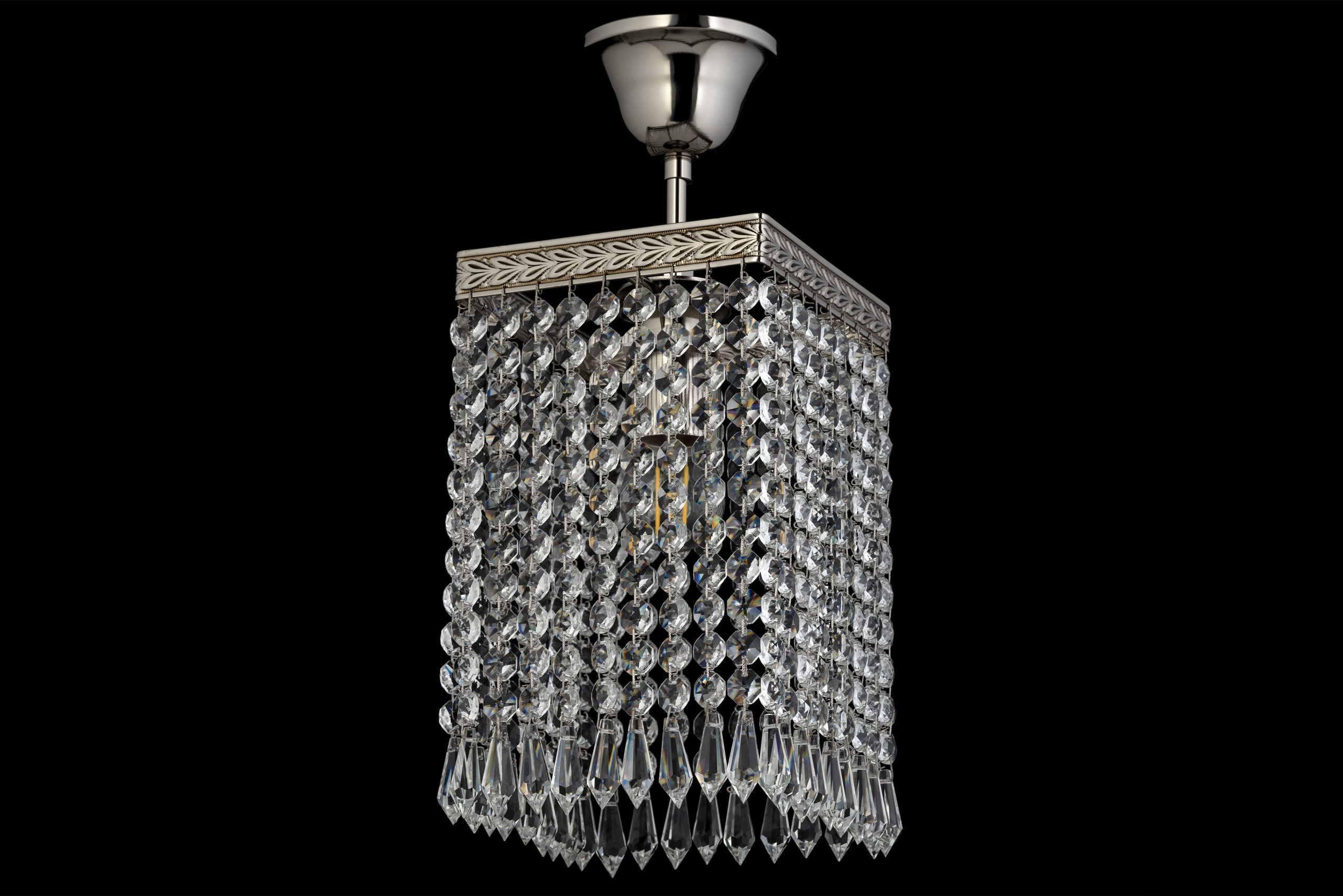 • Нижний край оформлен длинными остроконечными подвесками-призмами («сосульками»), которые образуют каскадную структуру и придают композиции динамику.