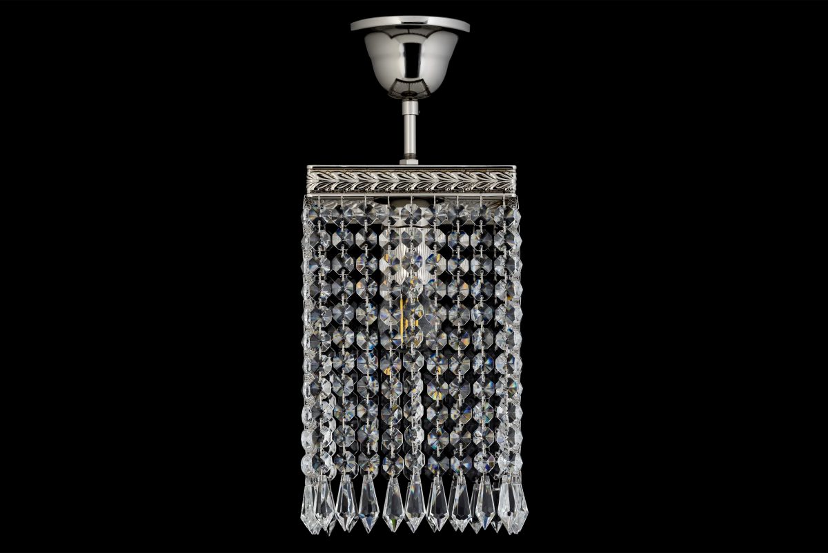 • Цветовое решение: Модель выполнена в цвете «серебро» (полированный хром или никель). Холодный оттенок металла делает светильник более сдержанным и современным.