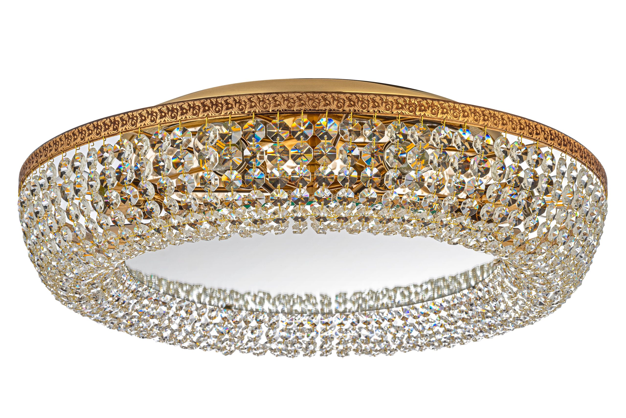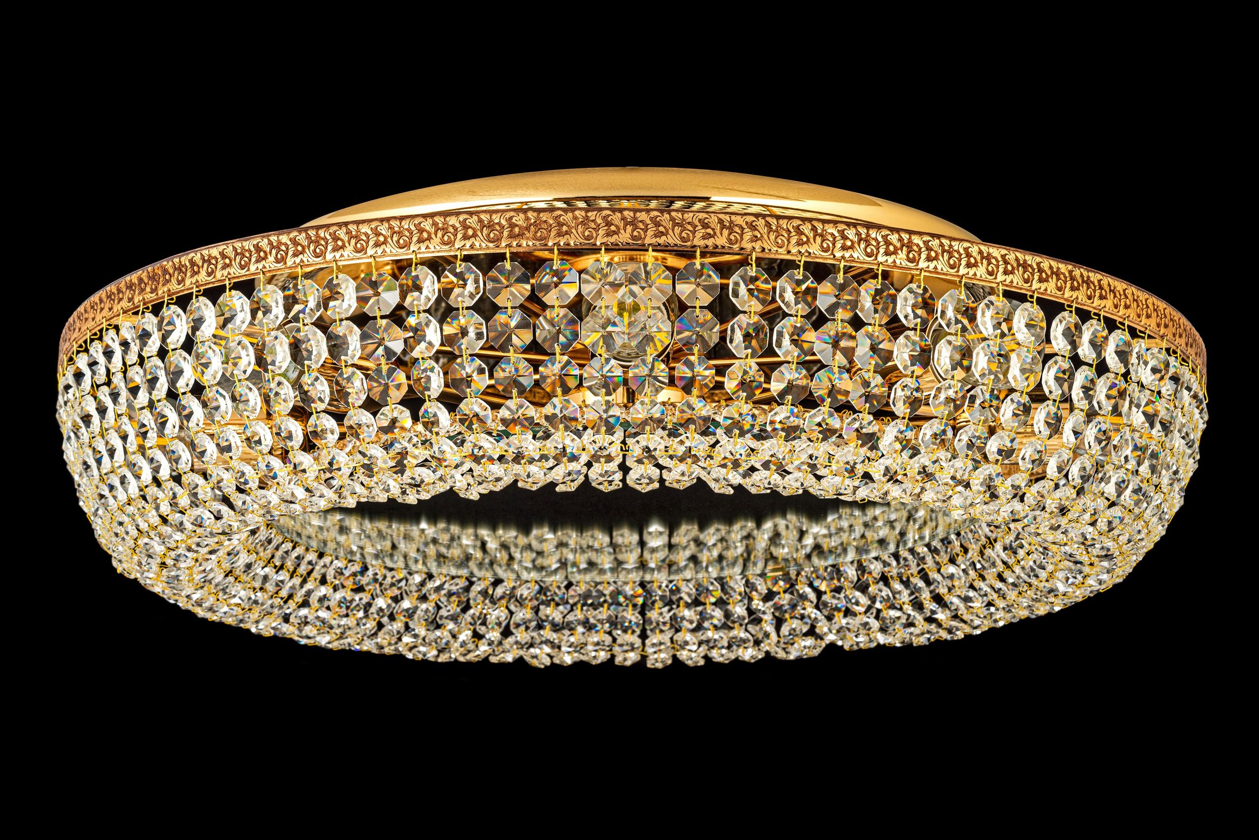 • Общее впечатление: Эта люстра производит впечатление дорогого, изысканного и блестящего предмета интерьера. Сочетание полированного золота, детализированного классического орнамента, обилия искрящегося хрусталя и зеркальной поверхности создает атмосферу роскоши и праздника. Она идеально впишется в интерьеры в стиле современной классики, неоклассики, ар-деко или гламура, а также в помещениях, где требуется подчеркнуть элегантность и добавить яркий акцент, например, в гостиных, спальнях, столовых или представительских зонах с невысокими потолками.