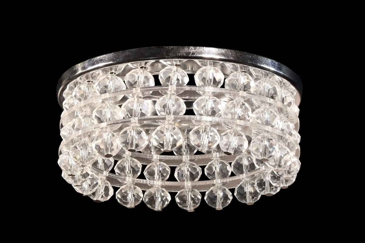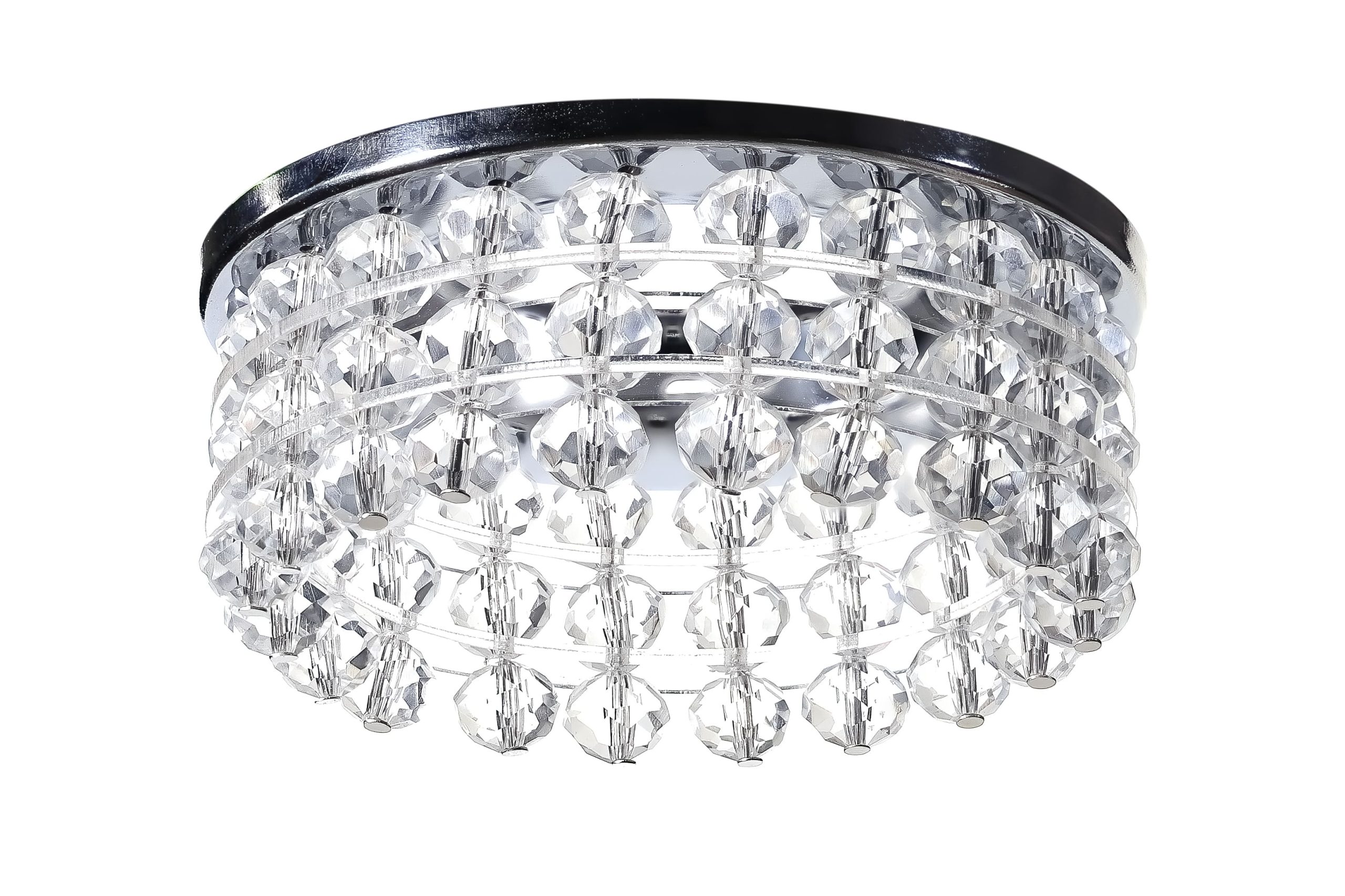 Ovillo GU10.5.14.8.100 N- встраиваемый спот выполнен в стиле Ар-деко с элементами Современной классики (Неоклассики) и Гламура. Основная особенность модели — использование нескольких рядов мелких хрустальных бусин, которые создают эффект «ювелирной огранки» на потолке.